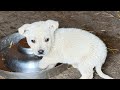 Недавно подобранный щенок уже охраняет свою еду).. |
